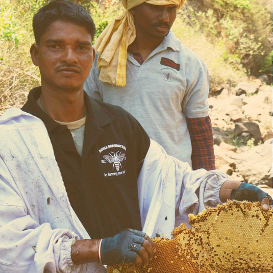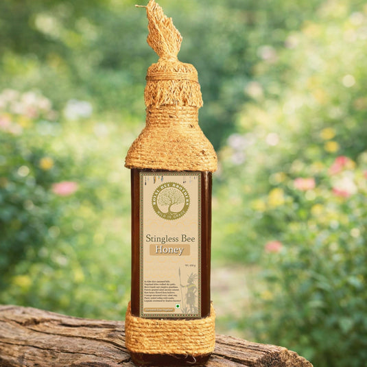 This rare and exquisite honey harvested from the rugged terrains of Nagaland, produced by the stingless honeybee (Meliponini), also known as the Dammer bee. Honeybees collect the nectar of Jujube, Gooseberry, King Chilli, and various citrus blossoms and produce a unique honey that is reddish-brown in color, with a tangy, sour-sweet flavor and a hint of natural fermentation due to rich content of organic acids.