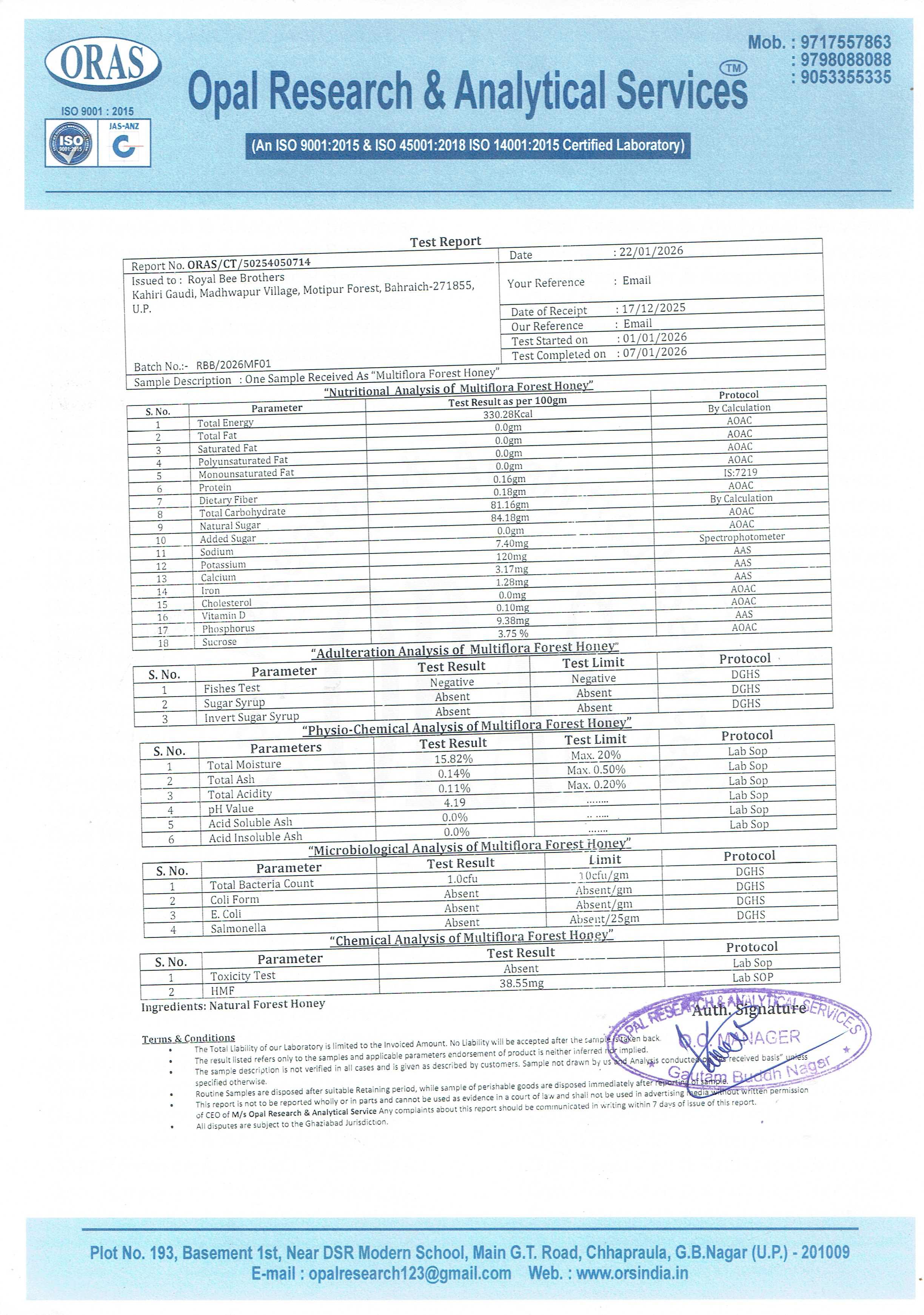This honey is tested in NABL certified lab, and we are providing test report with each bottle.